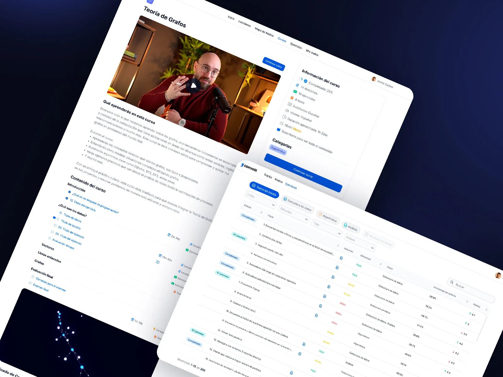El diseño e interfaz de esta plataforma de aprendizaje en línea están creados para priorizar la autonomía del usuario y una navegación fluida.